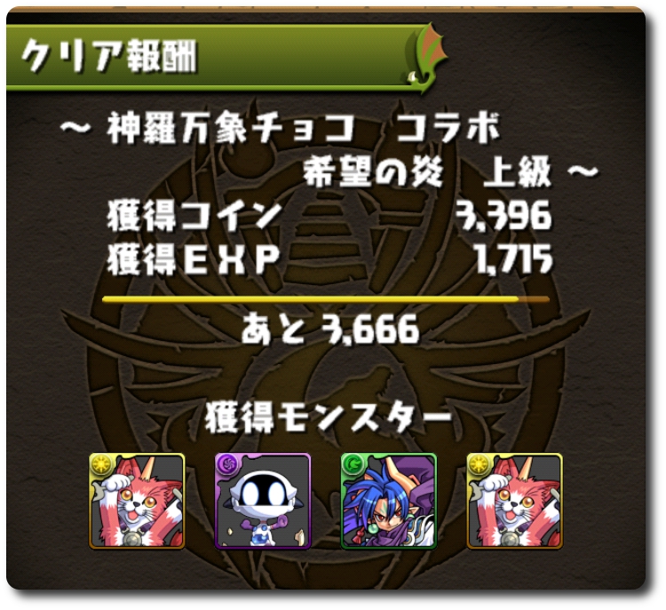 前日からランクアップの経験値調節がてら森羅万象のコラボダンジョンに…。