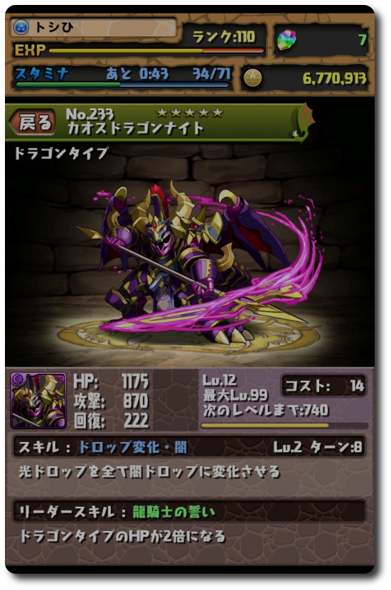 ようやくカオスドラゴンナイトになりました!!