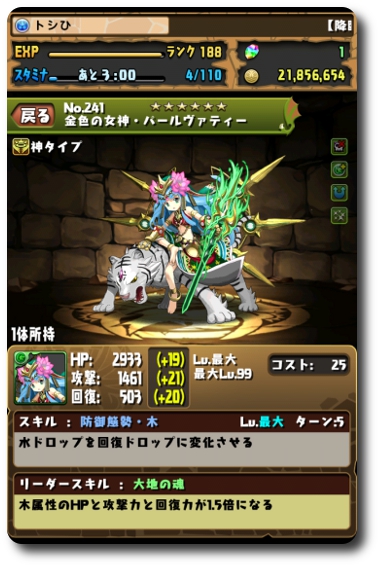 ようやくパールヴァティーのレベルが最大になりました!